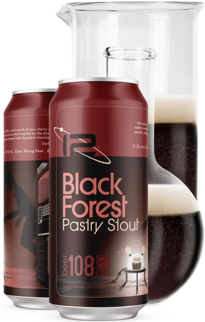 Indulge in the layered decadence of this rich, dark stout. Brewed with nine malts and an abundance of cocoa, sour cherry, and vanilla, it evokes the timeless dessert it’s named for – dark chocolate, tart fruit, and creamy sweetness in perfect harmony. A complex, dessert-worthy creation that’s pure indulgence in every sip.